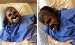 Mulher inicia trabalho de parto usando máscara do Chewbacca