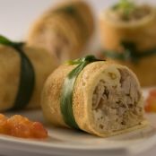 Rolinhos de crepe com sobrecoxa de frango