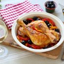 Estas coxas de frango em leito de chouriço, pimentões e azeitona tem um sabor delicioso, também é saudável e perfeito para um bom jantar com amigos...