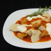 Recheio: Coloque o creme de leite, as batatas, amido e os temperos no liquidificador e bata por 1 minuto Em uma p