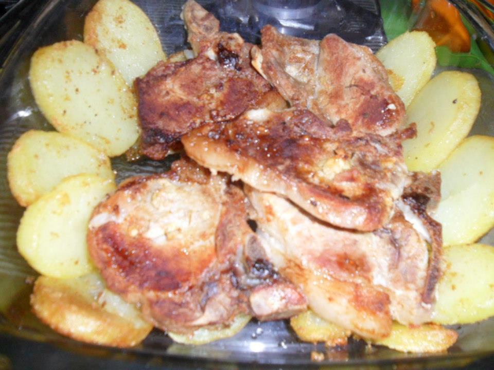 Bistecas de Porco com batatas assadas em laminas