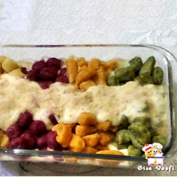 - - recheio: frios a gosto ou peito de frango cozido e desfiado ou carne moida ou queijos ou legumes em cubinhos cozidos no vapor.