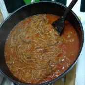 MODO DE PREPARO Refogue a carne moída no azeite com o alho Coloque os tomates o caldo a pimenta o orégano deixe