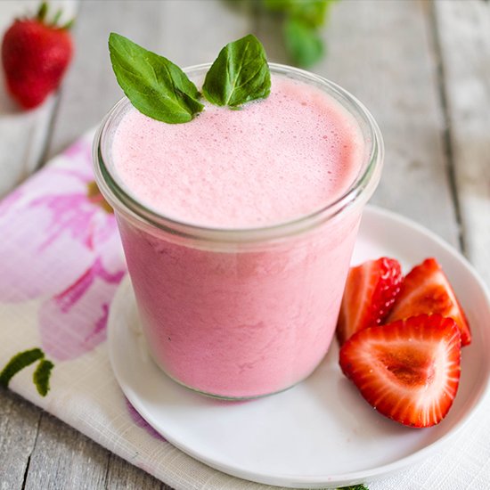 Bata todos os ingredientes no liquidificador, sirva em seguida