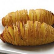 lave as batatas, corte em tiras finas, mantendo-as unidas na parte inferior (não aprofunde os cortes)