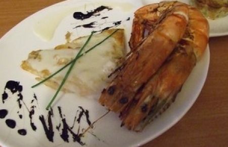 Duo linguado/camarões ao molho de Champagne e flan de abobrinhas