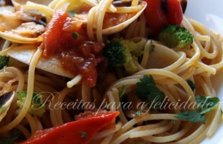 Esparguete com Ameijoas e Pimentos Assados
