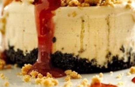 Gelado de Doce de Leite com Calda de Frutas Vermelhas e Farofa de Amendoim
