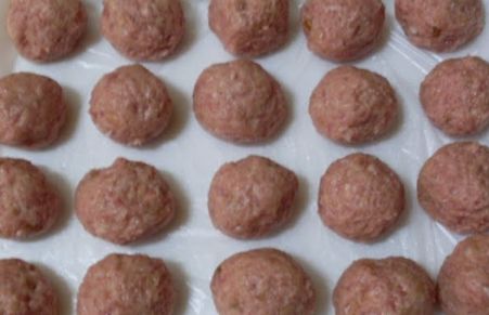 Bolinho de carne moída, de origem italiana (polpeta), também conhecida como almôndega.