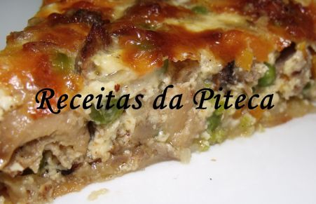 A regra de ouro por aqui é reaproveitar e não deixar estragar! Por isso mesmo saiu mais uma quiche, de improviso, para gastar uns restos de entrecosto grelhado carnudo que sobraram de uma outra refeição. Com uma lata de cogumelos e uns legumes que por aqui tinha se fez uma deliciosa refeição para quatro! ;)