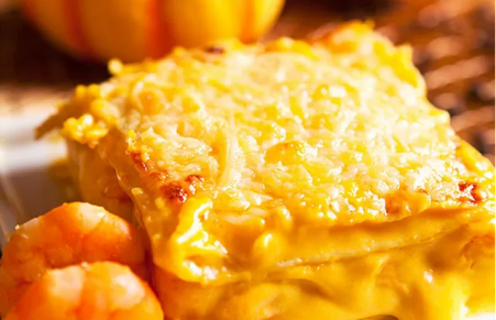 Lasanha de abóbora com camarão