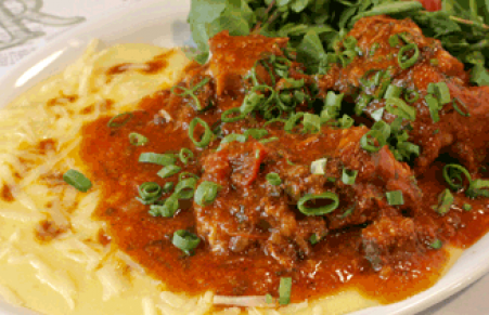 Rabada com agrião e purê de batata