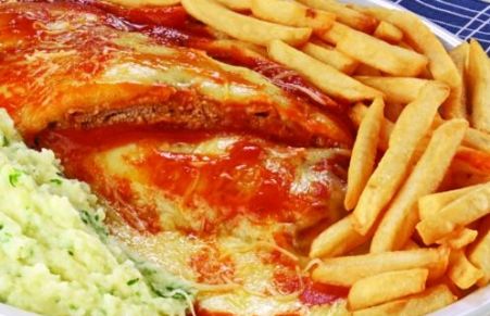 Bife a parmegiana o favorito da família..muio simples..mas delicioso.