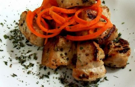 Cubos de frango nas ervas e cenoura Julienne