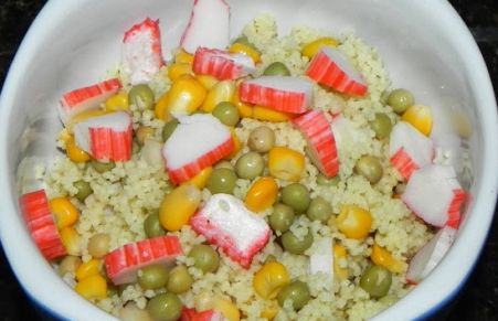 O couscous marroquino é um ingrediente excelente pra se ter sempre em casa, pois ele pode ser servido quente, frio, como salada, e por ser leve e de sabor suave, combina com tudo! E é muito rápido de preparar. Coisa de 5 minutinhos, alguns ingredientes picadinhos e você tem uma refeição. Mais fácil que isso só se fizer miojo! rsrs...