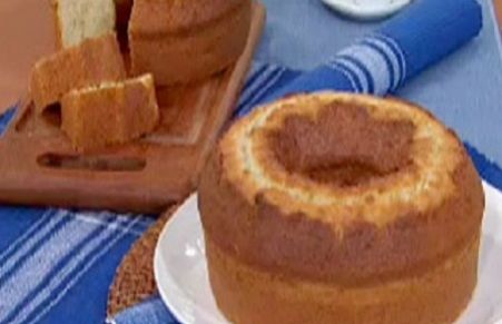 Bolo com poucos ingredientes que pode ser servido como sobremesa depois do almoço ou como lanche da tarde, acompanhado por uma xícara de chá.