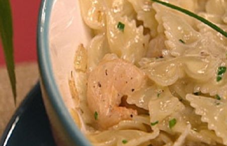 Farfalle, camarões flambados e creme de leite. A combinação desta receita é irresistível!