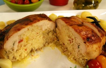 Frango Desossado Recheado com Risoto