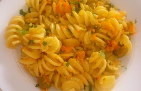 Macarrão ao alho e azeite com cenoura e azeitonas