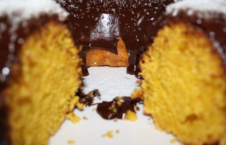 Bolo de Cenoura e Côco com Cobertura de Chocolate