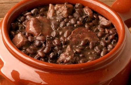 Feijão preto com lombo de porco, costeletas de porco e Caldo de Bacon