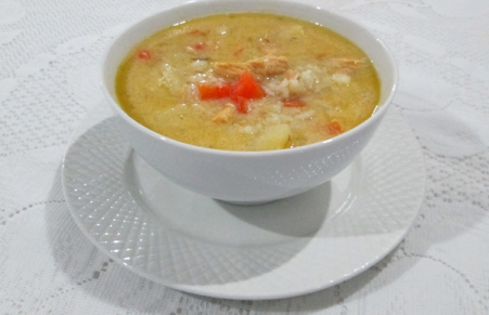 Canja de galinha com arroz cru