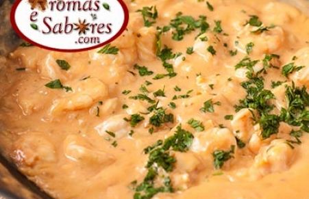 Eu não curto muito camarão, mas o povo adora quando faço! Essa receita lembra um estrogonofe e pode ser servida com arroz branco ou dentro de uma abóbora.