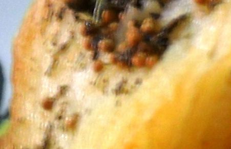 Para o molho de ervas finas, foi utilizado azeite, manjericão, alecrim, salsa e sementes de mostarda.