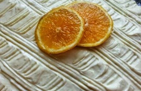 Bolo de liquidificador de laranja com recheio e cobertura de mousse de laranja e leite ninho