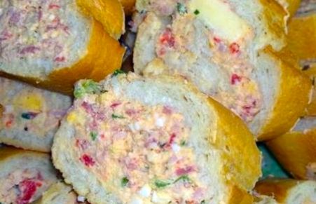 BAGUETE COM RECHEIO CREMOSO DE QUEIJO E PRESUNTO! Deliciosamente inovador!