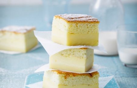 Chamado de bolo mágico porque com uma só praparação, temos três texturas diferentes no resultado! Um sabor de baunilha delicioso e que impressiona!