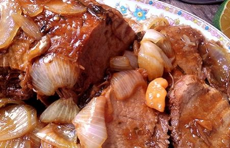 Pernil com cebola na panela de pressão