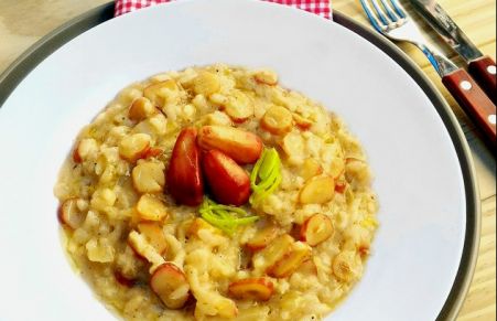 Já que risoto combina com inverno, porque não aproveitar um risoto de pinhão, um ingrediente super brasileiro encontrado em abundância nesta época para prepará-lo?
