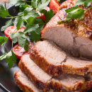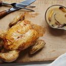 Frango Assado com Maionese Guarnecido com Abacaxi Grelhado