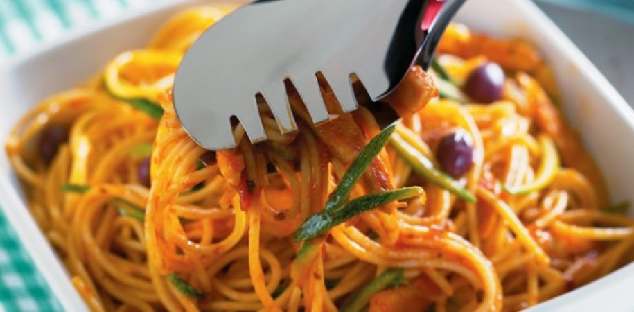 Macarrão com frango e abobrinha