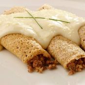 - 1 xícara de farinha de trigo; 1 1/2 xícara de leite; 2 ovos; sal a gosto; 1 colher de azeite