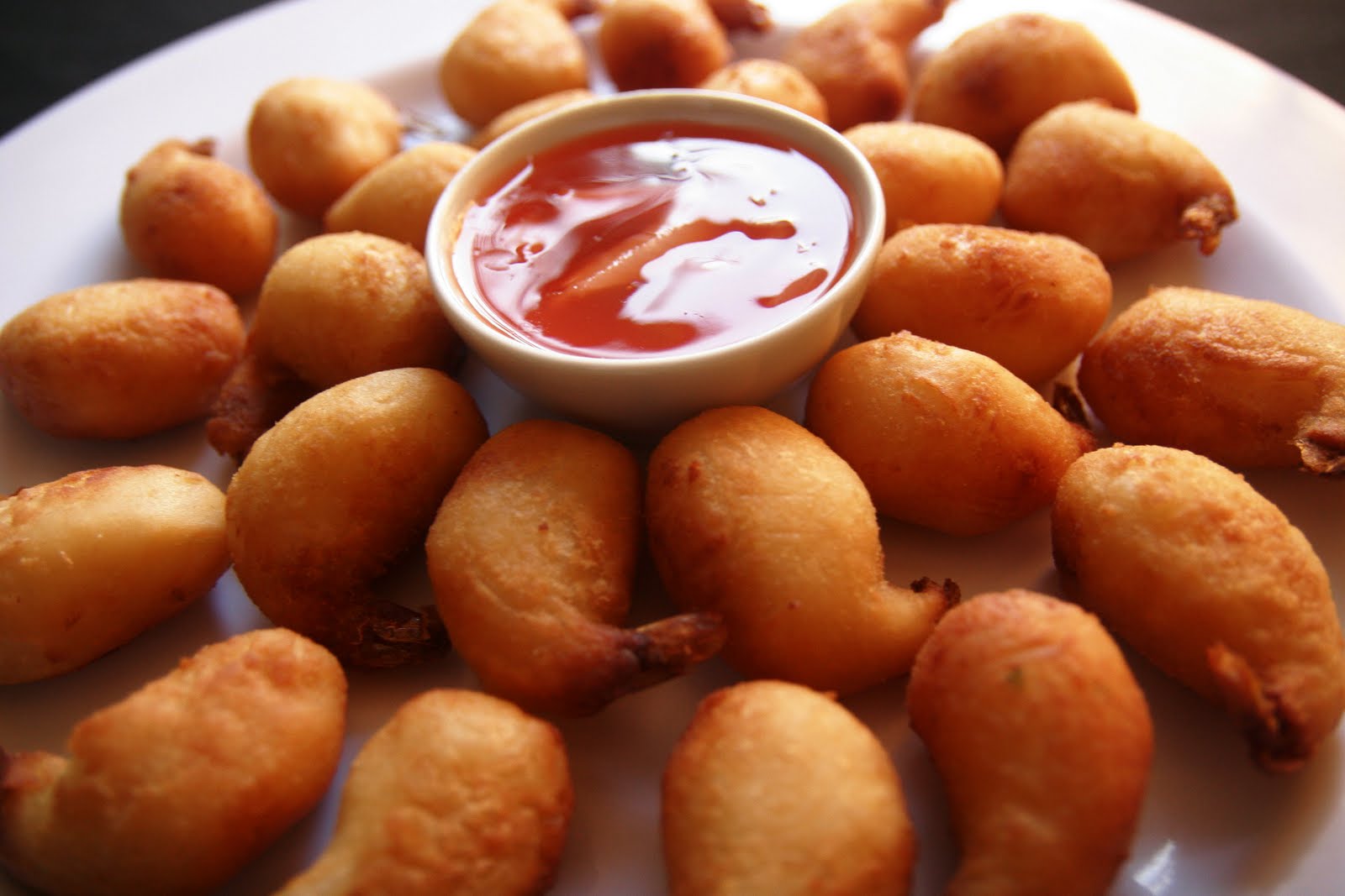 - 1 batata barôa (mandioquinha amarela) cortada em rodelas finas e frita em imersão até ficar crocante