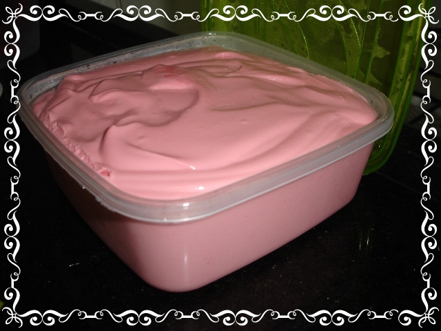BATA MEIA CAIXA DE MORANGO COM O LEITE DE VACA NO LIQUIDIFICADOR, MISTURE O CREME DE LEITE E O LEITE CONDENSADO, RE...