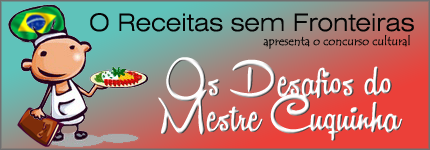 Nós do Receitas sem Fronteiras adoramos propor desafios culinários através dos quais instigamos nossos membros a usar a criatividade para preparar deliciosas receitas e enriquecer cada vez mais a cultura gastronômica mundial! Por isso criamos esta sessão de concursos culturais e cada mês teremos um novo "Desafio do Mestre Cuquinha"!