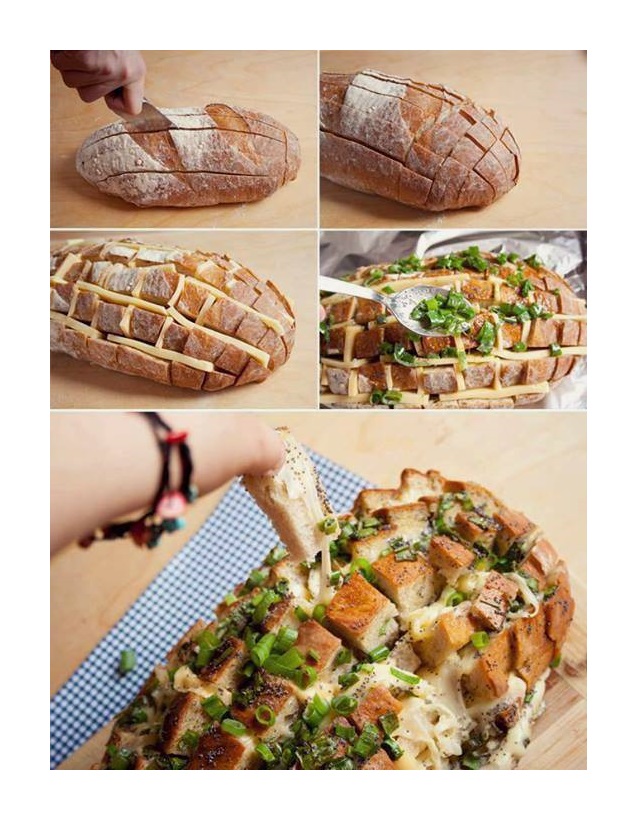Corte o pão como na foto, quadriculado, mas cuidado para não despedaçar