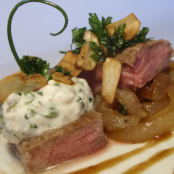 Pernil de cordeiro com cebola caramelizada e Catupiry com ervas