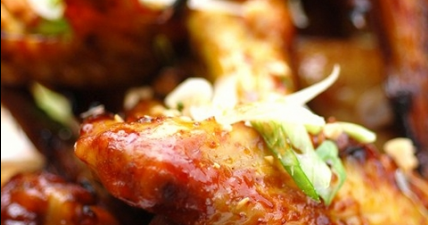 Assim que estiver pronto coloque em um prato e despeje um pouco de molho sobre as asas. Decore com a cebolinha e o amendoim.
