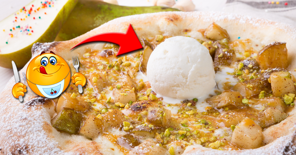 Que tal fazer uma pizza de peras que você vai servir com uma bola de sorvete de gorgoonzola, como na foto?