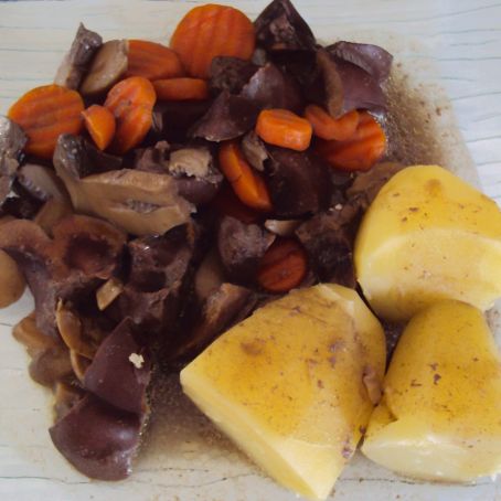 Sirva a carne, acompanhada de batatas cozidas no vapor.