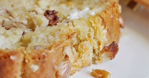 Bolo de queijo de cabra, nozes e cebolas caramelizadas