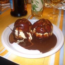 Disponha sobre os pratos de apresentação ou de servir, acompanhado do coulis de cassis servido bem quente que será adicionado no último instante!