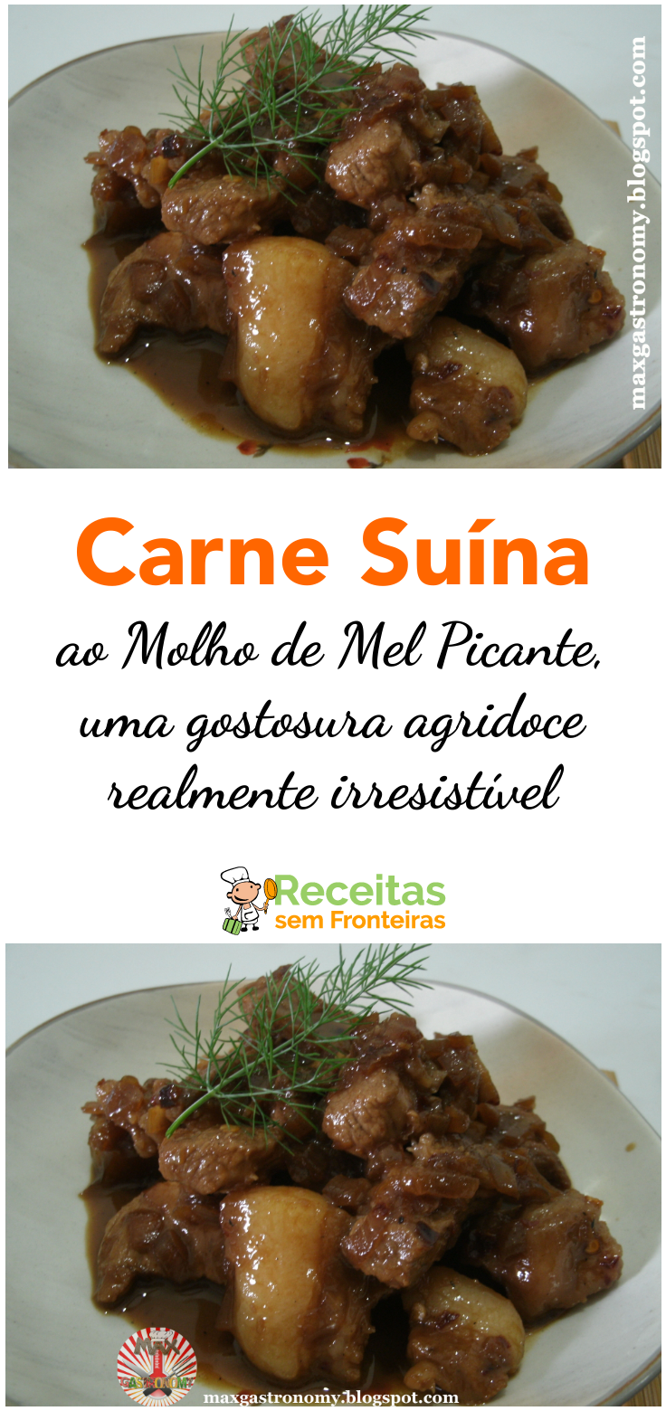 Carne de porco ao molho de Mel Picante, tem um toque doce, levemente azedo e picante ao gosto!