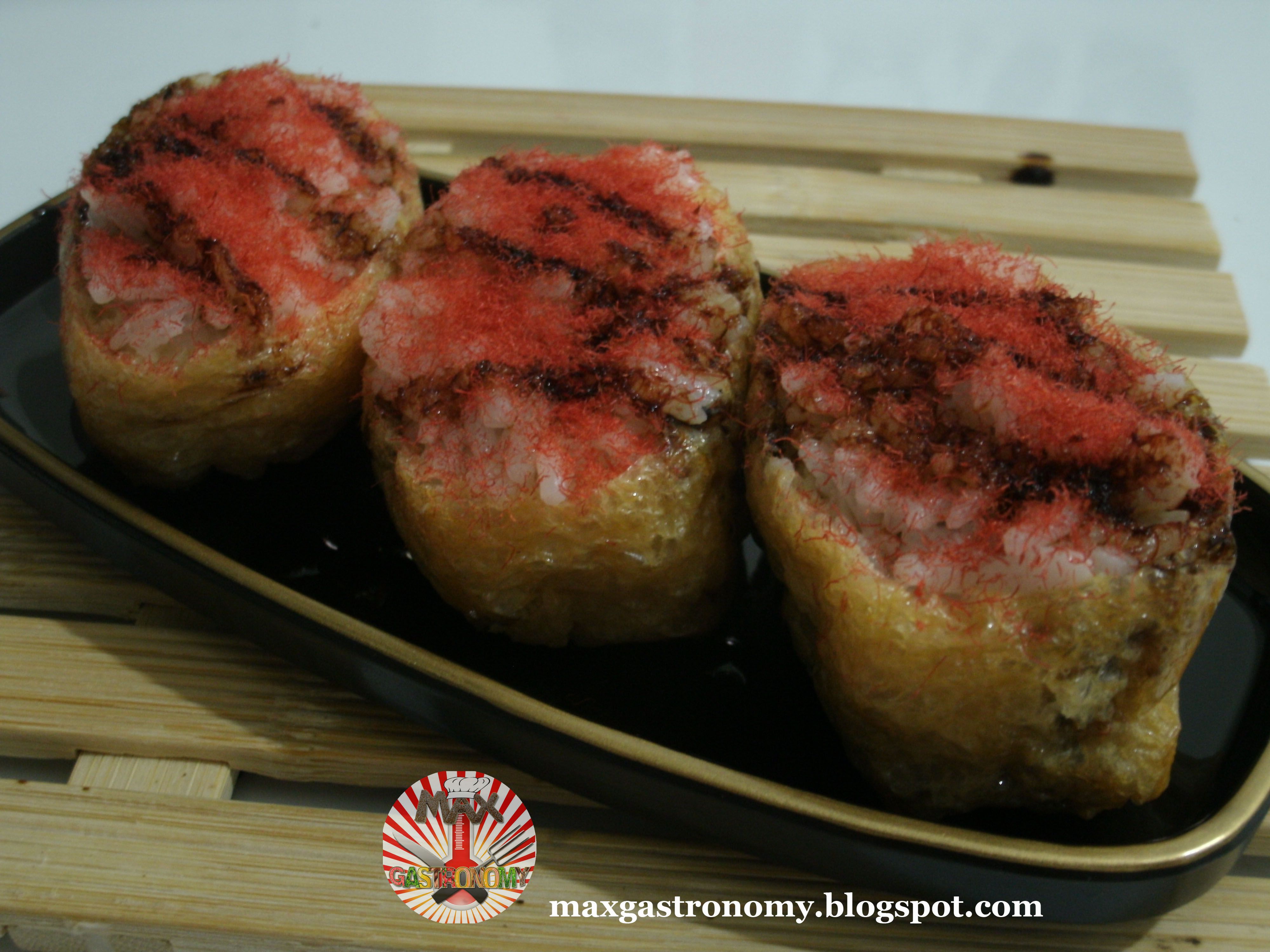 Para a MONTAGEM, Preencher cada "saquinho" com o arroz temperado e polvilhar com o sorobo. E Servir com um pouco de shoyu por cima.