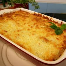 Em uma refratário, faça camadas com as berinjelas, molho vermelho, molho branco e mussarela.