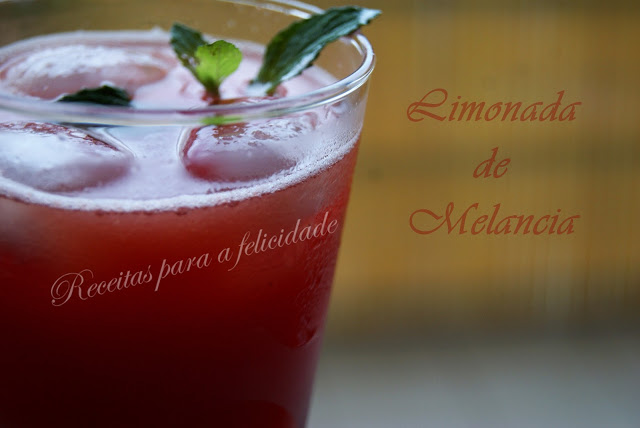 Coloque no liquidificador todos os ingredientes excepto o gelo e triture uns segundos. Coe a limonada de melancia para um jarro ou copos.